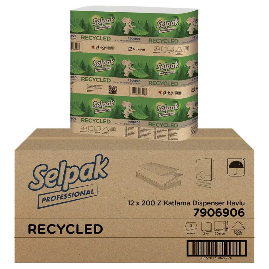Selpak Profesyonel Recycled Z Katlı Havlu 200 Yaprak - 12'li