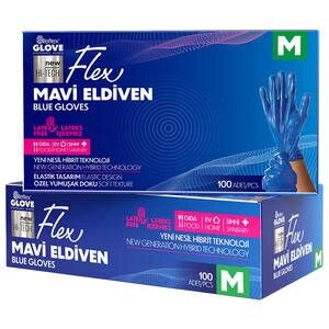Flex Tpe Hibrit Eldiven Medium Mavi 100'lü